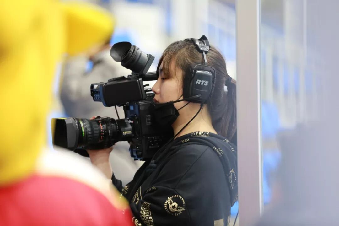 邓素凡总是对摄像充满热情。一到转播的中途休息,她就流连各个机位讨教不同的拍摄技巧。转播开始前,她也会与导播团队一起拉片,分析镜头中的问题。