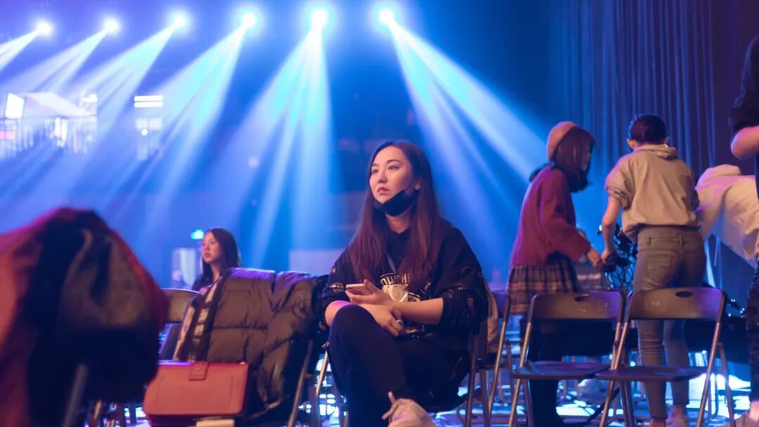 与视频技术的同学沟通搭建系统,与导播沟通机位和镜头,进行安全检查,胡泊有条不紊地协调和统筹现场工作。在灯光照不到的地方,她散发着自己的光和热。