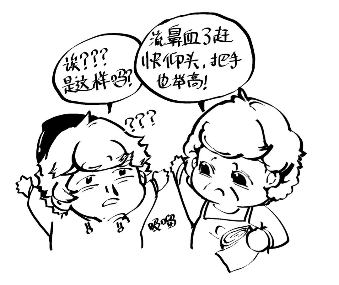 春天气候干燥,很多同学容易流鼻血。而只要一流鼻血,身边肯定少不了有人紧张地让你仰头,鼻孔朝天,再让你举起双手,因为大家都觉得,这样就能止住鼻血了。其实,这种方法不但不利于止住鼻血,还会使鼻血倒流至咽喉、食管、气管和胃;同时,举手对止血也影响甚微。