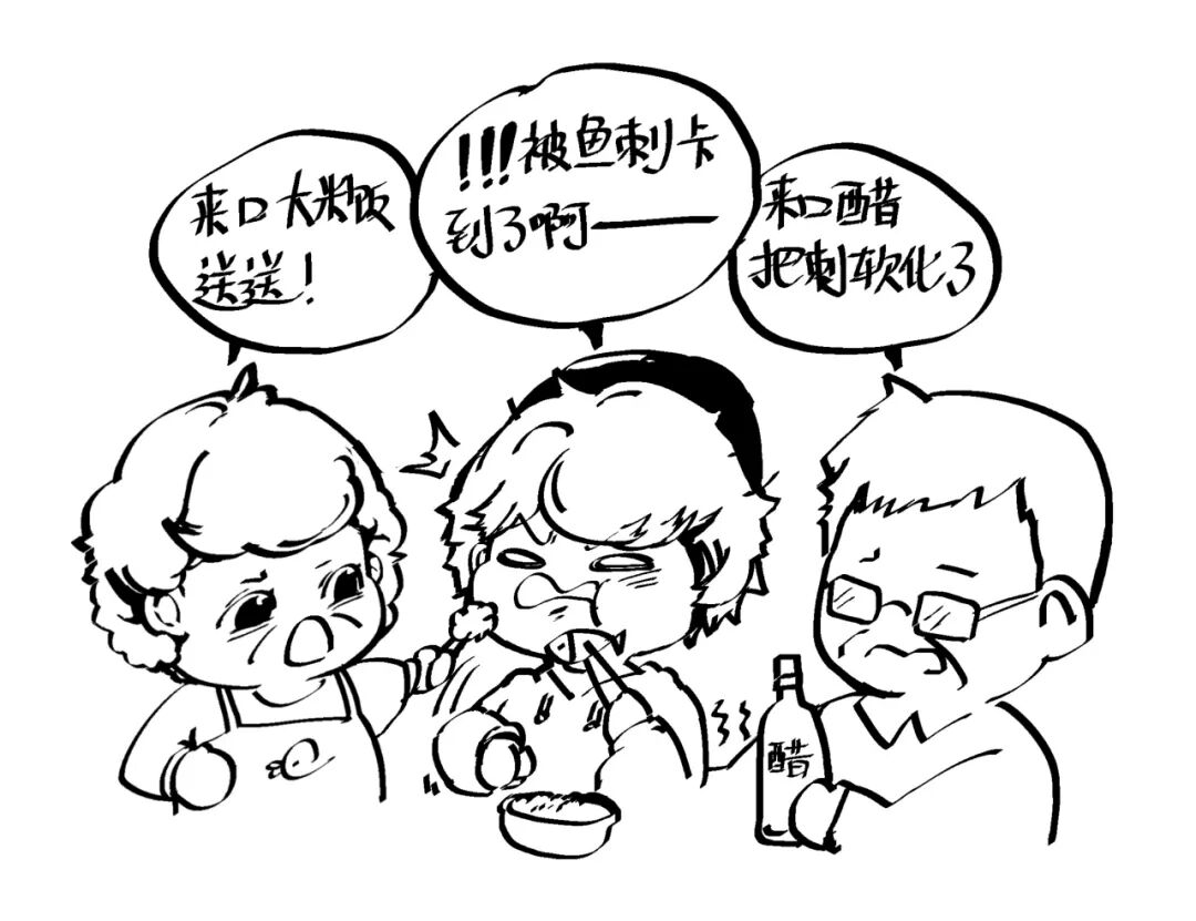 相信很多同学都有被鱼刺卡到的经历,也和传传一样被很多民间偏方坑害过。其实,喉咙被鱼刺卡住时,喝醋、吞饭等方法都是不对的哟。鱼刺泡在醋里一段时间确实可以软化,但喝醋时一饮而下,根本起不了作用,还会损伤食道黏膜等。吞饭则容易把鱼刺挤入更深位置,增加取出难度,更可能产生划伤咽喉粘膜,引起发炎肿胀等更严重的后果。