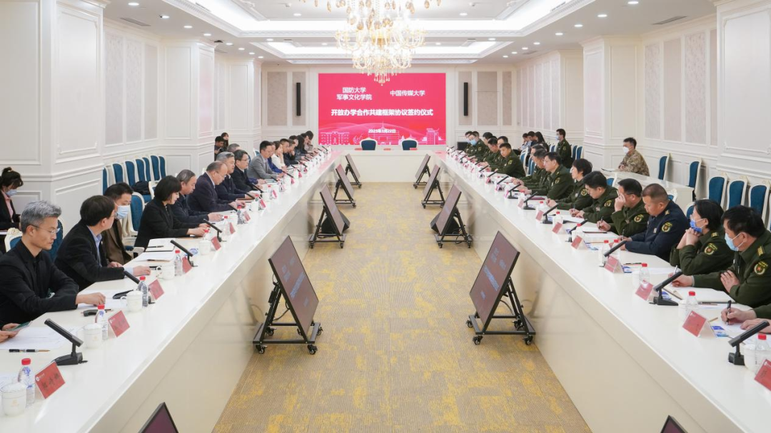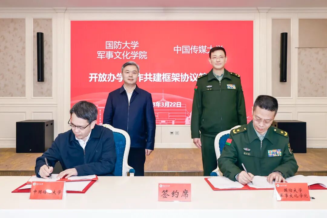 国防大学军事文化学院办公室、教务处、科研学术处、政治工作处、纪检监察处、安全管理处、供应保障处、基础部、军队文化工作系、军事文化传播系、军事文艺创演系、实验艺术剧院、学员大队,华体会娱乐场 党委组织部、学生工作部(处)、本科生院、研究生院、华体会娱乐体育首页 处、学科建设与发展规划处、人事处、国内交流与合作处(校友工作办公室)、教育发展中心、新闻学院、电视学院、戏剧影视学院、播音主持艺术学院、动画与数字艺术学院、音乐与录音艺术学院、媒体融合与传播国家重点实验室、国家舆情实验室相关负责同志参加签约仪式。