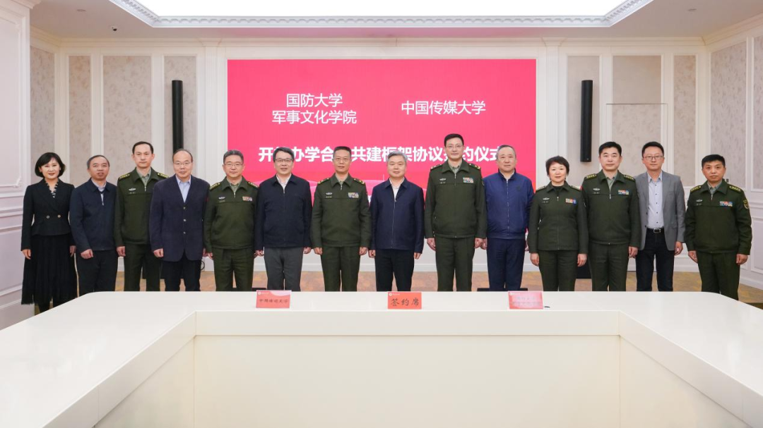 廖祥忠表示,国防大学军事文化学院历史悠久、底蕴深厚,是军事文化领域传播与人才培养的重要力量。两校办学特色鲜明、学科优势突出,具有较强的互补性,学校党委高度重视与国防大学军事文化学院的合作。此次双方携手达成开放办学合作协议,是强强联合、优势互补,意义深远、未来可期,是军地融合、军民融合在高等教育领域的创新探索,将共同助力两校教育事业高质量发展,为“讲好中国故事,传播好中国声音”作出更大贡献。