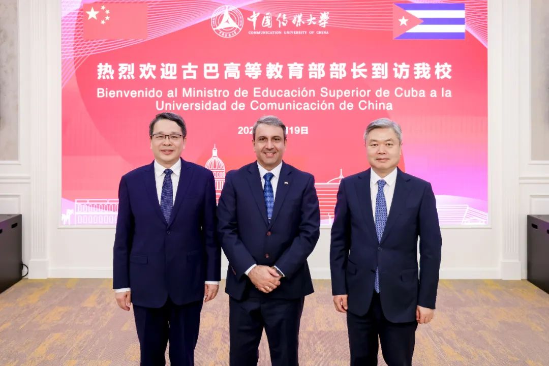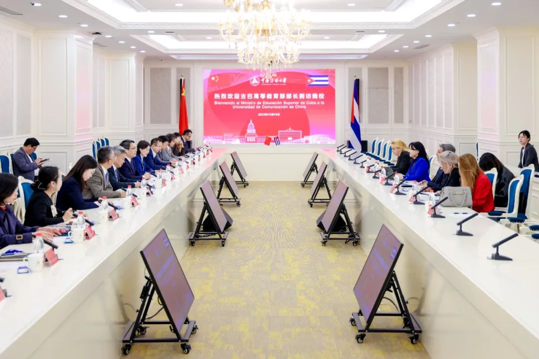 张树庭就中古两国未来在高等教育的合作提出倡议。他表示,自“一带一路”倡议提出以来,学校充分发挥在信息传播、文化传播领域的优势特色,积极践行人类命运共同体理念,以传媒之能促进人类文明交流互鉴,取得了积极成效。张树庭倡议能够在以下几个方面,加强与古巴高等教育界的交流合作:共建人类命运共同体海外研究中心,携手传播人类命运共同体理念;邀请古巴知名高校加入华体会娱乐场 “传媒高等教育国际联盟”,依托联盟促进中古两国在传媒教育领域的交流与合作;以“一带一路”纪录片学术共同体为平台,推动中古纪录片创作研究交流;积极推动学生交流交换,深化中古两国人文交流;与古巴哈瓦那大学共建信息传播联合中心,共同推进数字教育合作。他希望以Walter Baluja García部长到访为契机,进一步加强与古巴高等教育界的交流合作,共同谱写属于中古两国高等教育高质量发展的新篇章。