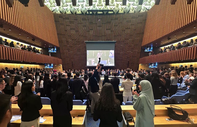 我校双播学子鲁屹博在2025日内瓦全球青年模拟联合国大会大展风采