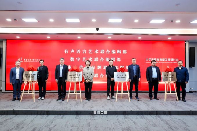 华体会娱乐场 播音主持艺术学院院长喻梅、动画与数字艺术学院院长王雷、广告与品牌学院副院长侯玥、继续教育学院院长屈善孝与出版社领导班子成员曾白凌、张毓强、张国涛、宣宝剑共同为四个联合编辑部揭牌。中传出版社今年以来与学校播音主持艺术学院、动画与数字艺术学院、广告与品牌学院、继续教育学院相继达成共识,决定共建“有声语言艺术联合编辑部”“数字艺术联合编辑部”“智能广告与品牌联合编辑部”“职业教育联合编辑部”,开启“院社协同、学科共建、优势互补、双赢共进”的合作出版新模式。