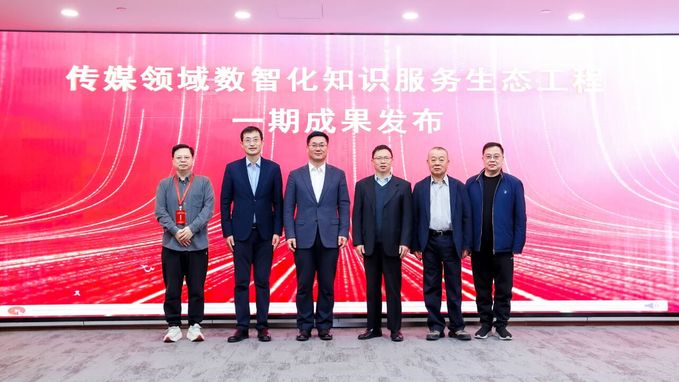 魏贻恒、李永强等六位与会嘉宾为“传媒领域数智化知识服务生态工程”一期成果按下启动键。“传媒领域数智化知识服务生态工程”一期成果包括“中传云教・数字教材平台”“中国传媒文库・知识服务平台”“中传象胥智能编校系统”三大核心产品,标志着出版社在数智转型中迈出关键一步。