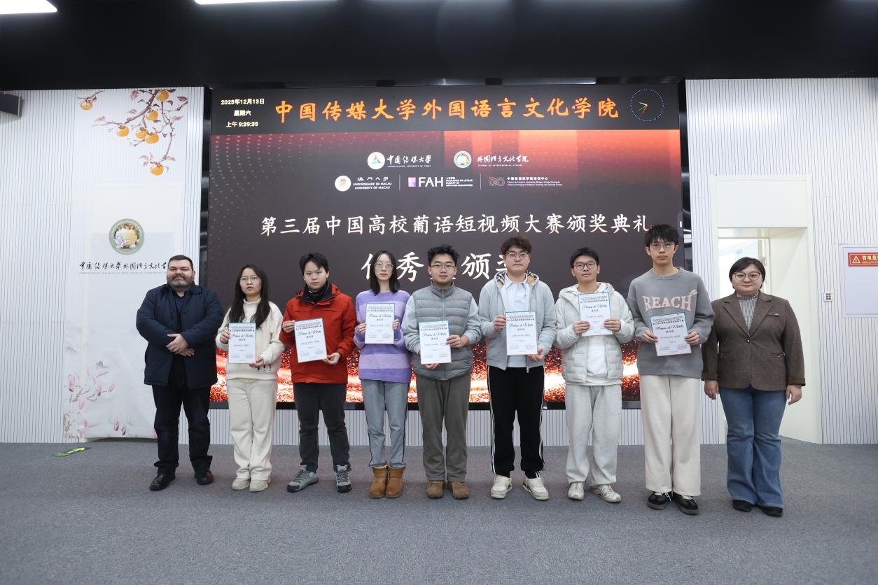 (通讯员 李昱 刘馨忆 颜巧容 摄影 林曦 宗泱泱)12月13日,第三届中国高校葡语短视频大赛颁奖典礼暨“科创新‘视’界·青年传新声”主题交流会在华体会娱乐场 外国语言文化学院举行。本届大赛以“科创中国”为主题,共收到来自内地及澳门29所高校的64部参赛作品,经评选产生15部获奖作品。活动为青年学子与业界专家搭建了对话平台,共同探索面向葡语国家的有效传播路径。