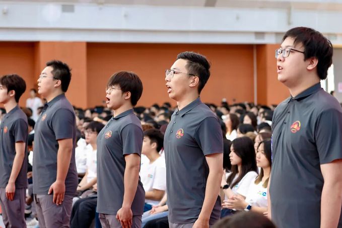 The opening ceremony had a main venue at the Beijing campus and a branch venue at the Hainan campus, enabling online interaction between the two campuses. The red stage in the freshmen's seating area at the main venue was shaped like an unfolded book page and also like a brand-new letter addressed to the future, blessing the students to embark on a new journey of exploration as "diligent learners".