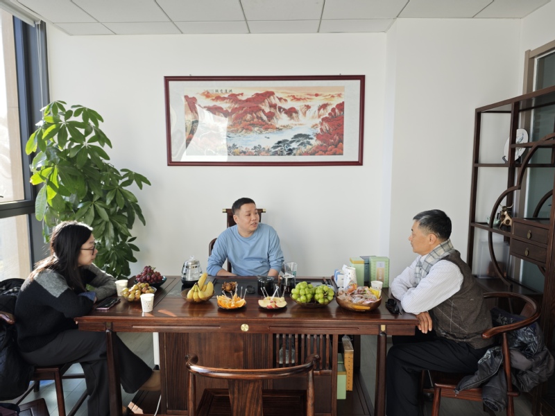 户外凛冽寒风呼啸,室内温暖舒适惬意。在宽敞明亮的办公室里,张旭峰热情接待了老师们,热茶新煮,果品堆盘,师生围坐,款款交谈。