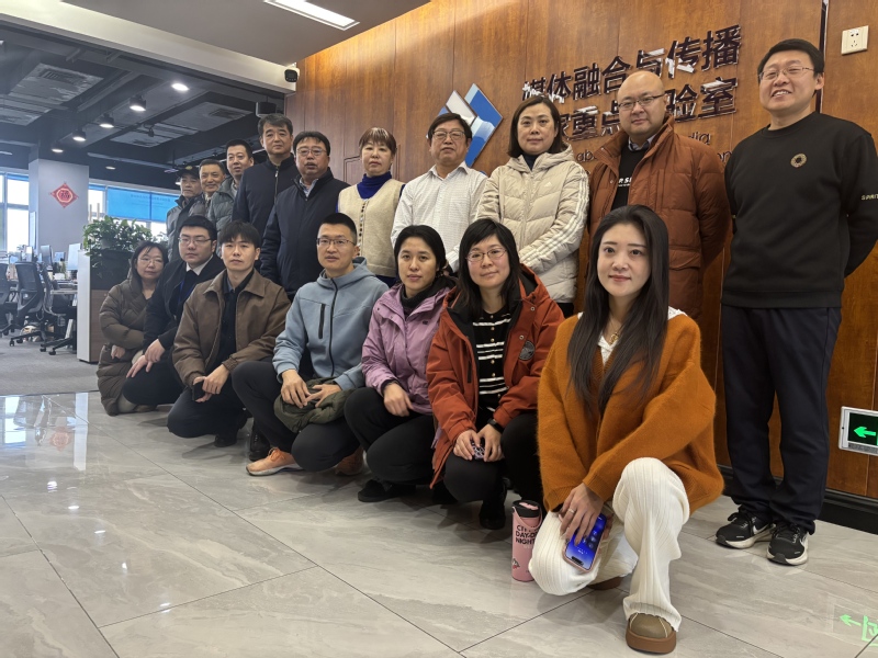 媒体融合与传播国家重点实验室党委书记侯隽、副书记续鸿飞一行对我院此次活动给予大力支持和热情接待,详细介绍了学校以媒体融合与传播国家重点实验室、国家舆情实验室、国际传播研究中心为核心形成的“三国”科研平台体系建设、服务国家战略需求的情况,并带领大家到国家舆情实验室、媒介音视频教育部重点实验室、广播电视智能化教育部工程研究中心实地参观研究情况和应用成果。
