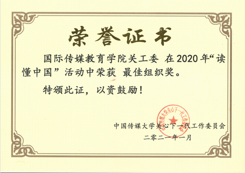 (通讯员:刘炳辛 邱星翔)国际传媒教育学院关工委积极参加学校关工委举办的2020年“读懂中国”活动,在3月17日学校关工委召开的活动情况总结会上,我院关工委提交的微视频作品和征文作品荣获多项奖励。