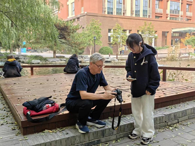 在“数字创意工作坊”的后续课程中,默里教授持续进行全流程指导,在课前进行英文资料阅读,课上讲授视觉文化理论,课中聚焦拍摄技能进行校内拍摄组织和小组指导,层层递进,培养学生的理论思考和动手能力。