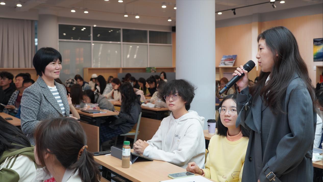 讲座现场气氛热烈,冯云在现场为同学们提供了多种实习机会,鼓励大家在真实职场环境中锻炼能力、积累经验。她表示:“希望同学们能够通过实践提前衔接职场,把理论知识转化为实际能力,为未来就业或深造打下坚实基础。”
