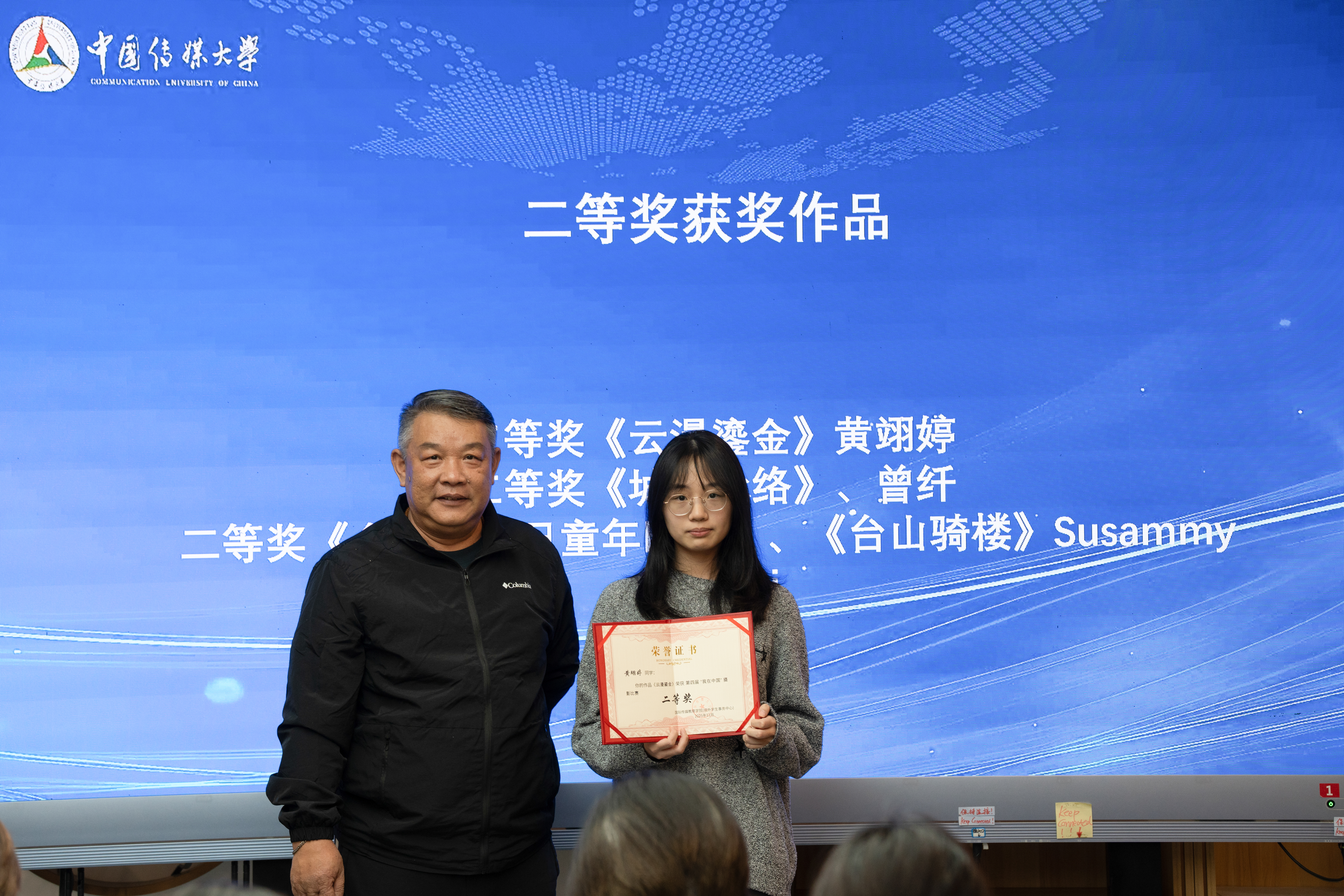 (通讯员 宋梦茜 摄影 王浩成)11月12日下午,第二届“靓在春夏 美在中传”摄影比赛、第四届“我在中国”摄影及微视频比赛颁奖典礼顺利举办。国际传媒教育学院院长金雪涛、副院长唐妮娜、专职组织员赵洪斌、境外学生事务中心彭军老师以及戏剧影视学院徐竞涵教授出席,与师生共同见证荣誉时刻,感受影像背后的美与情怀。