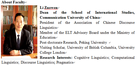 The PhD Program in Communication University of China has a strong cognitive science and research focus for students working in English as a foreign language. The program draws upon the expertise of distinguished faculty members, who have published substantially and undertaken national research projects in the field of language acquisition. PhD candidates do not follow a prescribed course of study but carry out their own research project under the guidance of personal supervisors. In addition to meetings with supervisors, you will have access to a range of academic activities such as seminars, workshops, conferences, field trips to support and develop your writing and research skills. We will also encourage you to develop your critical thinking, problem solving and presentation skills. A candidate should be committed to the preparation of a thesis of not more than 80,000 words that makes a significant contribution to research in language acquisition. Students will be awarded Doctor of Arts in Cross-cultural Studies upon successful completion of the program.