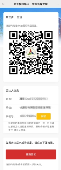 5.若关注后未绑定成功,点击下方“重新验证”按钮,重新绑定
