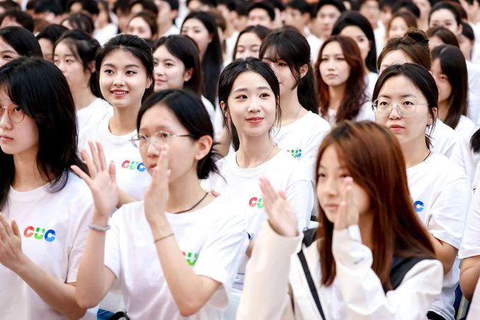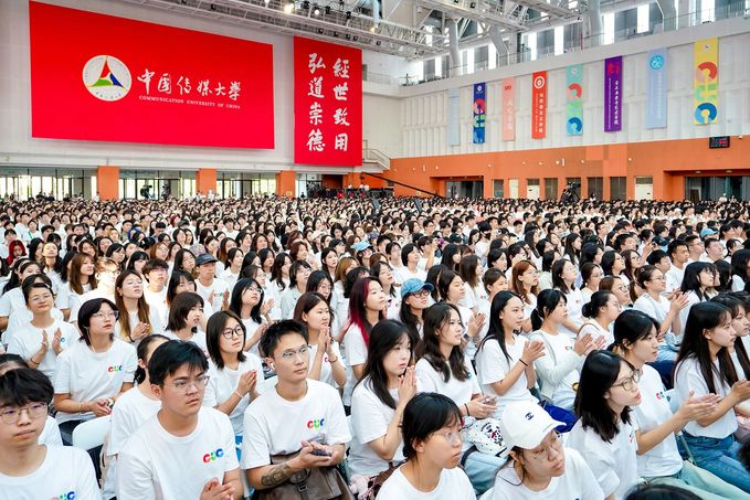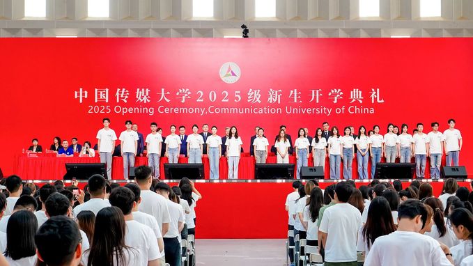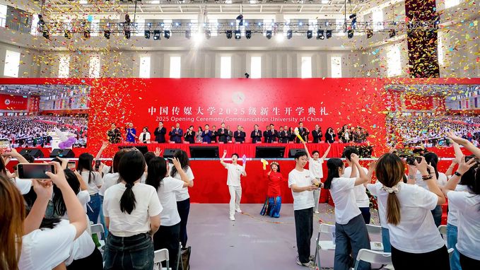 9月13日の午前、中国伝媒大学2025年度新生入学式が学生活動センターで盛大に開催され、6000人余りの新生が式典に参加しました。