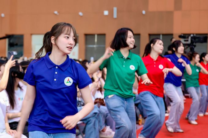 オリジナルの歌と踊り「私を白楊と呼んで」が式典を最高潮に引き上げました。この歌と踊りはエレクトロニックミュージックとラップの要素を融合し、当校生の元気いっぱいな精神的な姿を表現しました。