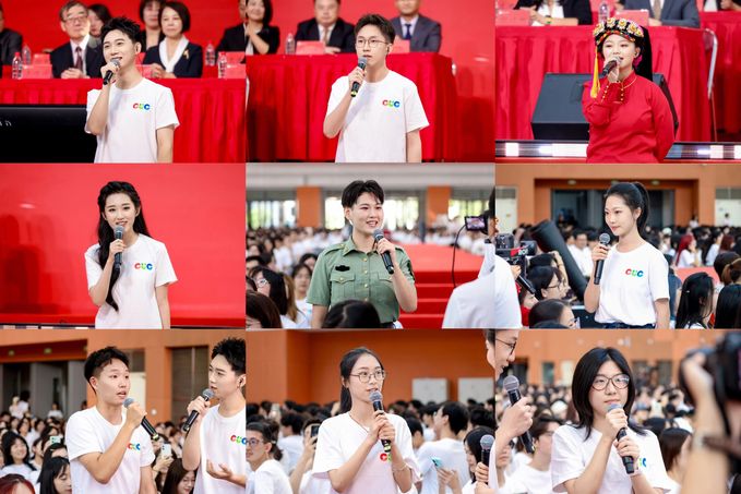 新生代表の発言セッションでは、「新生インタビュー団」が観客席に入り、ランダムにインタビューを行い、質問と回答の交流の中で当校の新しい専攻の魅力を披露し、新生の特色と本音を際立たせ、青春の群像を通じて新生たちの共感を呼び起こしました。