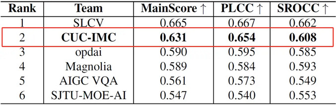 최근, CVPR 2025 NTIRE Workshop이 주최한 AI 생성 비디오 품질 평가 챌린지 결과가 발표되었다. 중국전매대학교 정보통신공학대학 지능미디어컴퓨팅 연구실(CUC-IMC)이 이번 국제 대회에서 두각을 나타내며 준우승을 차지했다! 우리 대학 참가팀은 스핑 교수가 지도교수를 맡았으며, 치저루(팀장, 2023학번 석사과정), 왕슈치(2023학번 석사과정), 장차오양(2024학번 박사과정) 학생들로 구성되었다. 이번 챌린지는 전 세계 100여 개의 최고 대학, 연구기관 및 기업 팀들이 참가했으며, 우리 대학 참가팀은 베이징이공대학, 중국과학기술대학, 상하이교통대학 등 국내 최고 연구기관의 참가팀들과 경쟁하여 뛰어난 성과를 거두었다.