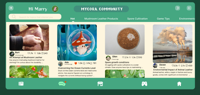 제작팀은 혁신적인 게임 형식을 통해 사람들이 생물 다양성과 지속가능한 소재의 중요성에 관심을 갖도록 유도하고자 했다. 게임은 온라인 가상 체험과 오프라인 실천 활동을 융합했다. 플레이어는 현실에서 균사체 성장 과정을 기록해야 하며, 이러한 내용은 게임 진행 상황으로 전환되어 다양한 단계의 환경보호 임무와 교육 콘텐츠를 해제한다. 다양한 동물 캐릭터를 구하는 과정을 통해 플레이어는 버섯 가죽이 전통 가죽 산업에 대한 생태적 대체 의미를 직관적으로 느낄 수 있다.