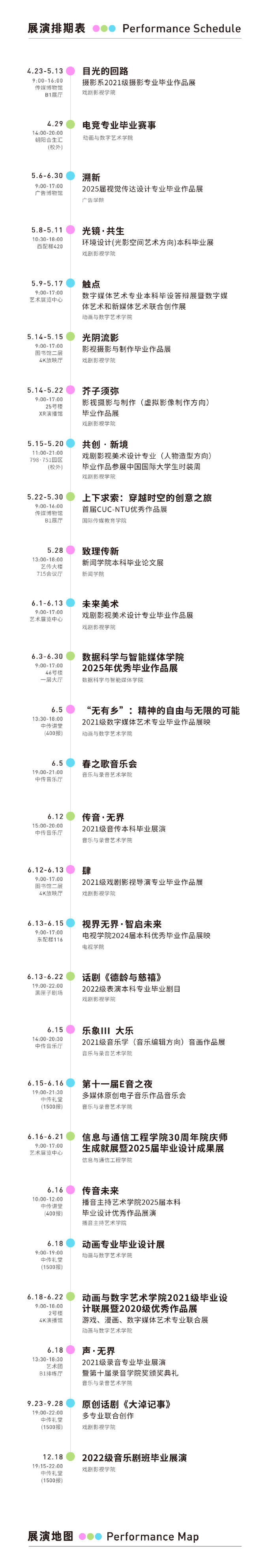 10개 단과대학, 36개 전공의 약 1천여 점에 달하는 학부 졸업생 작품들이 화려하게 선보였다. 이번 작품들은 예술, 인문, 이공계 세 가지 학문 분야를 아우르며, 사진, 회화, 디자인, 연극, 만화, 게임, 영상 창작, 음악 공연, 가상현실, 인터랙티브 설치 등 다양한 표현 형식을 포함했다.