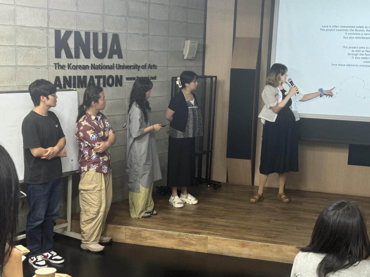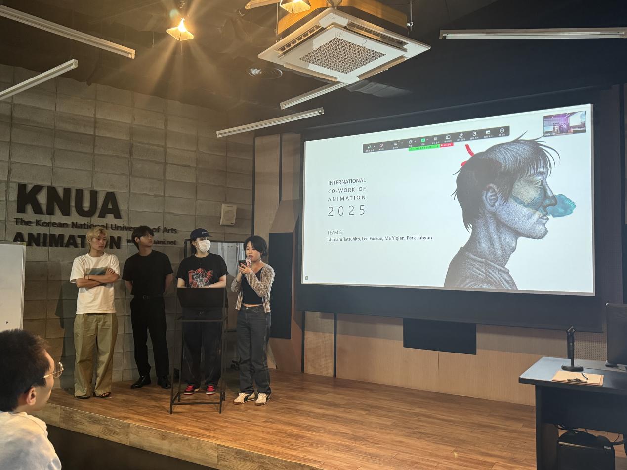 7월30일 오전, 이번Co-work 프로젝트는 한국예술종합학교 영상원에서 성대한 성과 상영회를 개최했다. 각 조 학생들은 무대에 올라 각자의 창의 작품을 전시하고, 창작 이념과 제작 과정 및 개인 소감을 자세히 설명했다. 상영 후 한·중·일3개국 대학 교수들이 작품에 대해 심도 있는 평가를 진행했으며, 학생들이 창작 과정에서 보여준 창의성, 협력 정신과 문화 간 소통 능력을 높이 평가했고, 특히 중국 측 학생들의 서사 구성 방면의 독창적인 창의와 시각적 표현 방면의 탄탄한 기초를 확실히 인정했다.