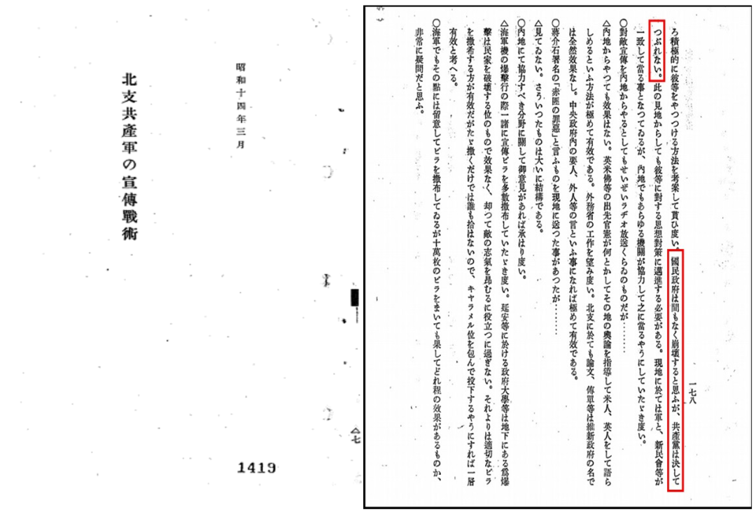 ▲ 일본 측은 중국공산당의 대일 선전이 주도면밀하고, 교묘하며, 효과적이라고 평가했다.