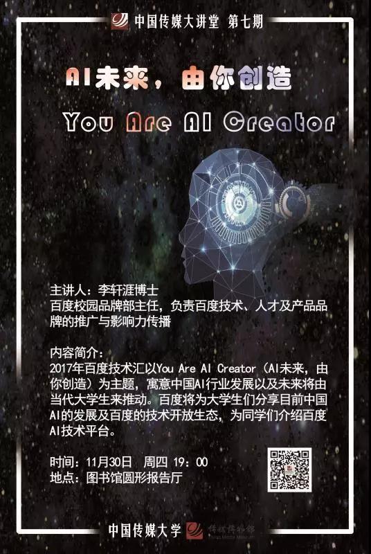 【传媒大讲堂|11月30日】AI未来,由你创造
