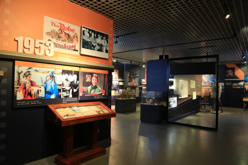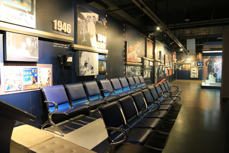 “电影艺术 百年发展”,运用对比陈列的方法,以时间为序,将同一时间点发生的世界和中国电影史上最具代表性的突出事件进行比较展示,通过经典电影作品的线条勾勒出中外电影艺术的百年历史。