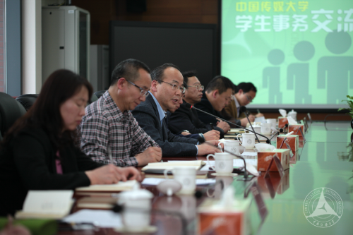 (通讯员 杨璇 摄影 王巽)4月15日下午,我校在2号楼918会议室举行第一次学生事务交流日座谈会。校党委副书记刘守训出席会议。来自9个学部(直属学院)的22名学生代表,以及学生处、教务处、财务处、保卫部、后勤管理处、就业指导中心、图书馆、体育部、计算机与网络中心、团委、校医院、基建处等13个职能部门的相关负责人及教师参加座谈会。座谈会由学生工作处处长张根兴主持。