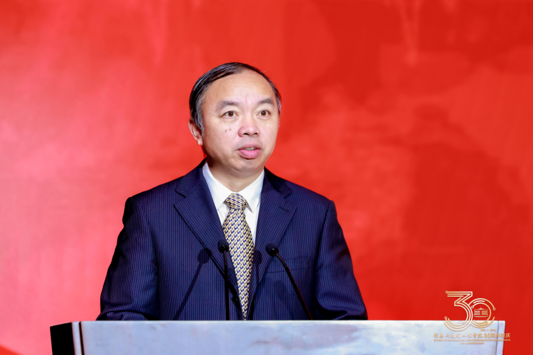 李熠星在致辞中向学院建院30周年表示热烈祝贺,并向长期以来为国家广播电视和网络视听事业付出辛勤劳动的全校师生和历届校友致以崇高的敬意。李熠星表示,作为奋战在一线的广电人,有幸见证了近年来学校综合实力和社会影响力的显著提升。信息与通信工程学院作为学校信息通信领域的中流砥柱,长期植根于广电传媒与文化科技领域,深耕电子信息领域相关学科,为国家广电事业的高质量发展贡献了智慧和力量。