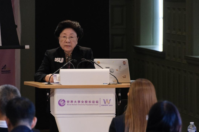 香港中文大学原副校长张妙清作《在不确定的时代推动性别平等》的主题演讲。