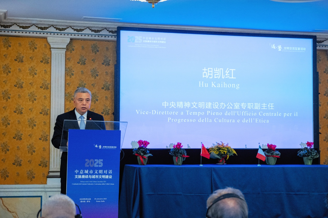 胡凯红主任在开场致辞中指出,城市的发展不仅要追求日新月异的现代化,也要守护历久弥新的历史文脉。中国正在积极探索一条让城市建设发展与文化遗产保护相得益彰的可持续发展道路。意大利在古迹保护、城市公共空间营造、社区文化传承等方面也积累了诸多宝贵经验。中意聚焦“文脉赓续与城市文明建设”主题展开交流对话,既是一次跨越时空的文明互鉴,更是一场面向共同未来的智识探索,必将进一步增进理解、凝聚共识,为人类探索城市的可持续发展贡献源自古老文明的崭新智慧。