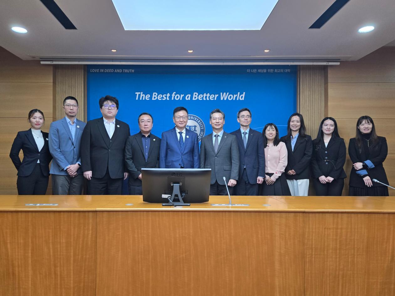10月21日,代表团到访汉阳大学,与金旻秀校长等校方领导围绕教师互访、英文授课项目拓展等议题交换意见,就签署学术交流备忘录达成基本共识。汉阳大学在2026QS世界大学排名中位列世界第159位,自2022年以来已有数十名中传预科结业学员在此深造。代表团专程看望了该校预科往届学员代表,详细询问其学习体验与职业规划。