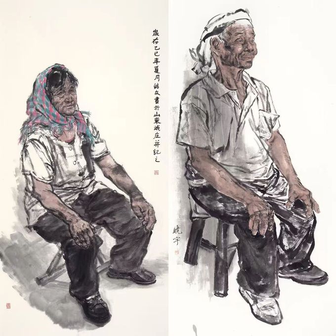 在山东淄博峨庄,人物组10余位师生开展了为期八天的“笔墨落乡间”下乡写生教学实践。师生将课堂移至田间地头、农家院落,直面最生动、最质朴的乡村人物,在充满烟火气的场景中思考如何运用传统水墨语言表现当代人物的内心世界与时代特征。在实践教学过程中,教师通过示范讲解、即时评画、专题研讨等方式,围绕“如何捕捉鲜活动态”“如何在现场组织画面”“水墨写生中的意笔表现”等课题对研究生进行系统指导。通过对乡村的深度观察和真挚的情感投入,创作饱含温度与故事的生命礼赞,使笔下的人物既有传统根脉,又具鲜活的时代气息,实现艺术境界与人文素养的双重提升。