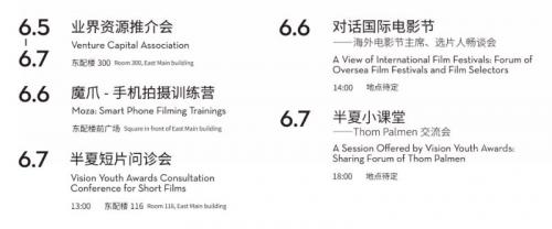 除了精心准备的展映以外,我们还将在展映周举办其他别具特色的系列活动:对话电影节——海外电影节主席、选片人畅谈会;“半夏”国际选片人问诊会;“半夏”小课堂——Thom Palmen交流会;魔爪手机拍摄训练营等。