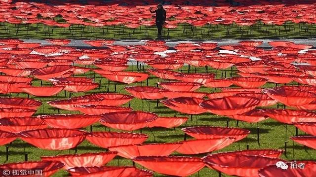▲德国慕尼黑,当地举行名为“永不再来”(Never again)的虞美人装置展览,纪念一战结束一百周年。 图/视觉中国